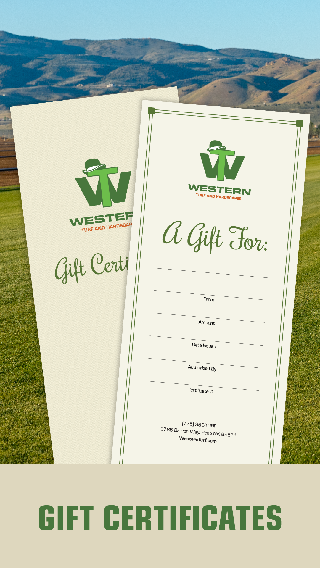 Showreel, webpage layout and construction, as well as social media graphics for Western Turf, the largest turf grower and seller in Northern Nevada. The showreel was created as a portfolio piece, while the Our Farm webpage was redesigned and rebuilt with a new layout, new photography and copy written by me. Lastly, the Gift Certificate graphics were created in multiple different aspect ratios to compliment different social platforms.